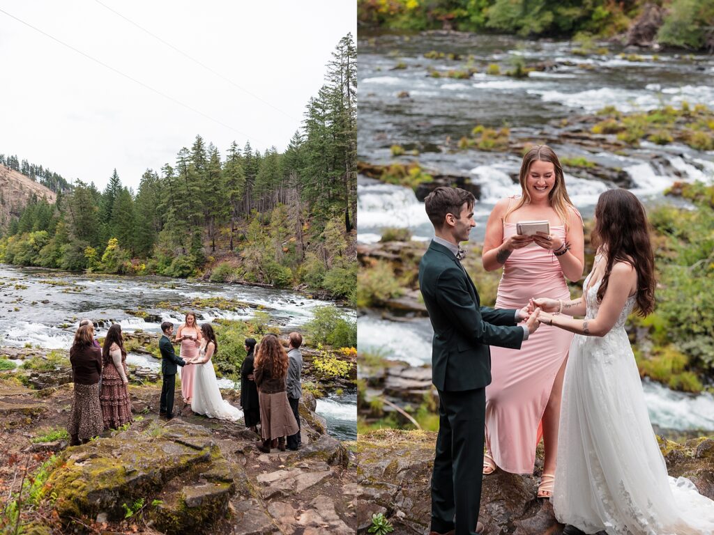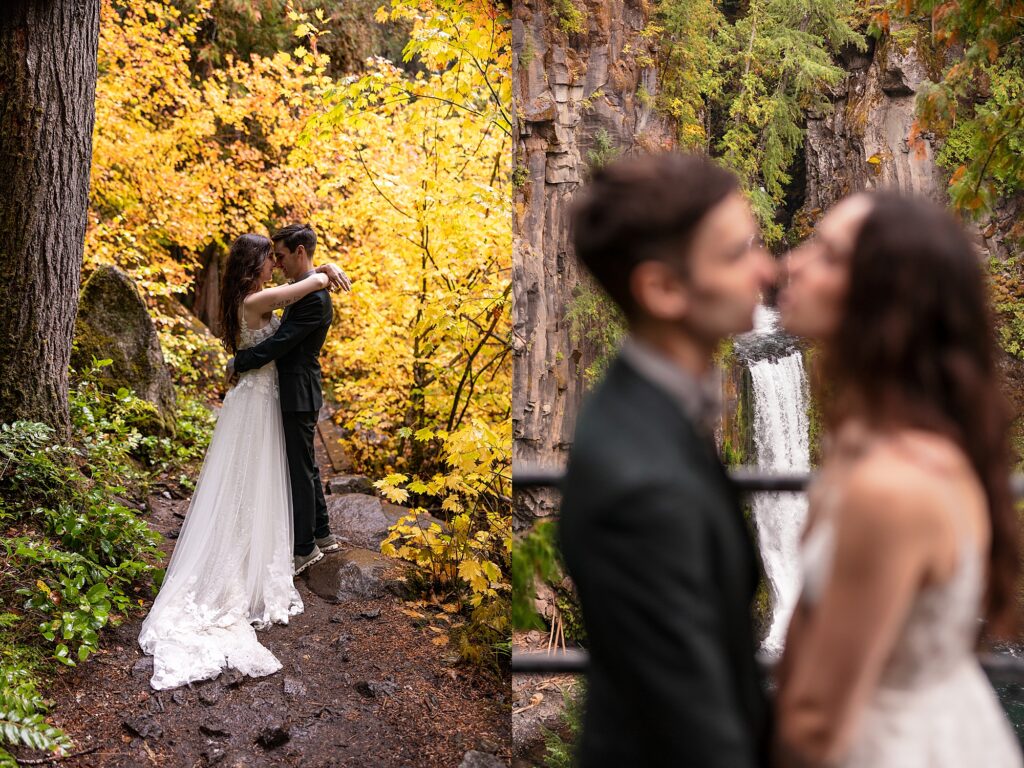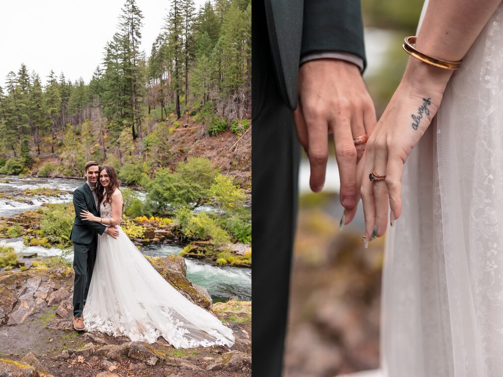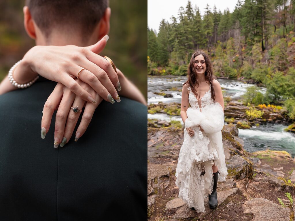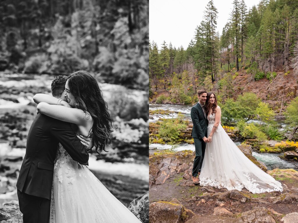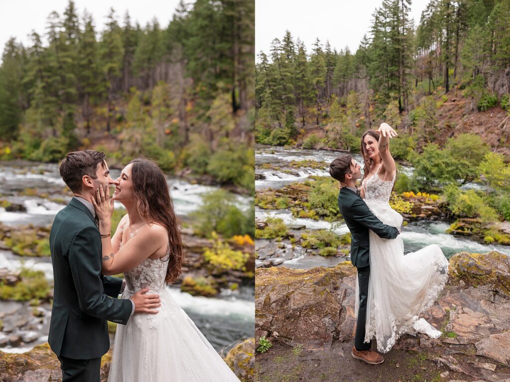 They had an intimate ceremony with the river backdrop which was gorgeous, with a handful of their favorite people. Then we wandered around the Umpqua National Forest for dreamy woodsy backdrops. They said their vows privately with the Toketee Falls in the background while it sprinkled on us. They embraced the rain and were SO lovely to photograph. Their love is playful and fun and it’s my favorite to capture. What an amazing day!