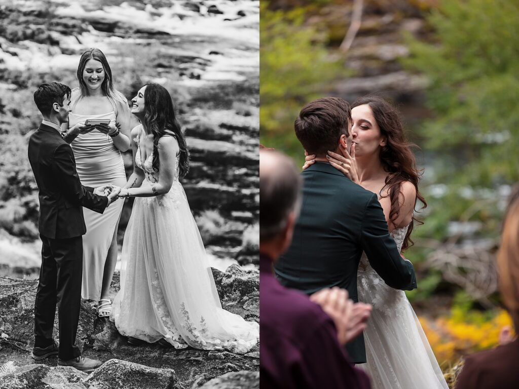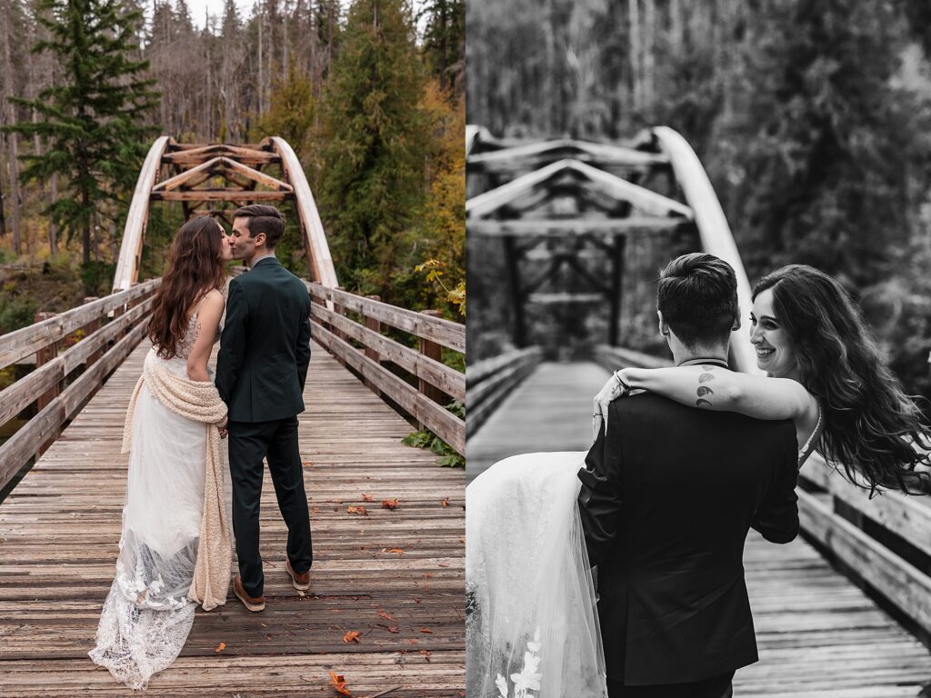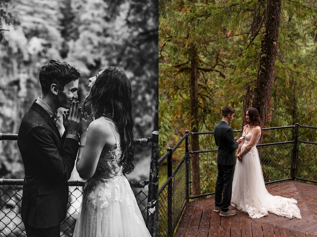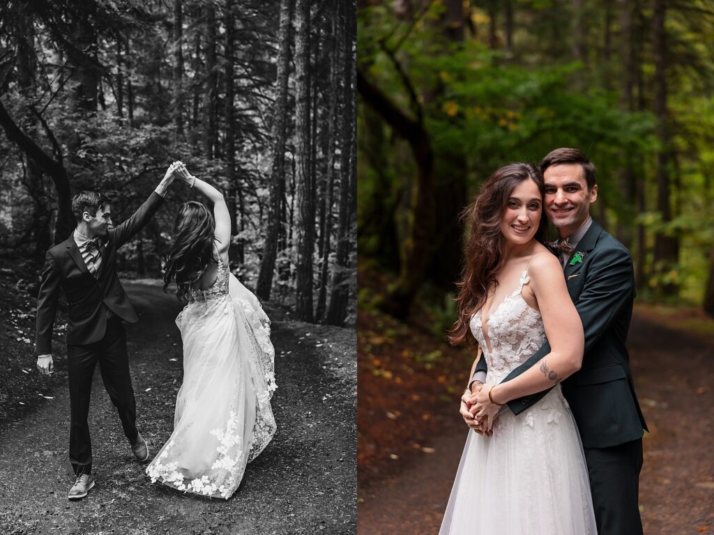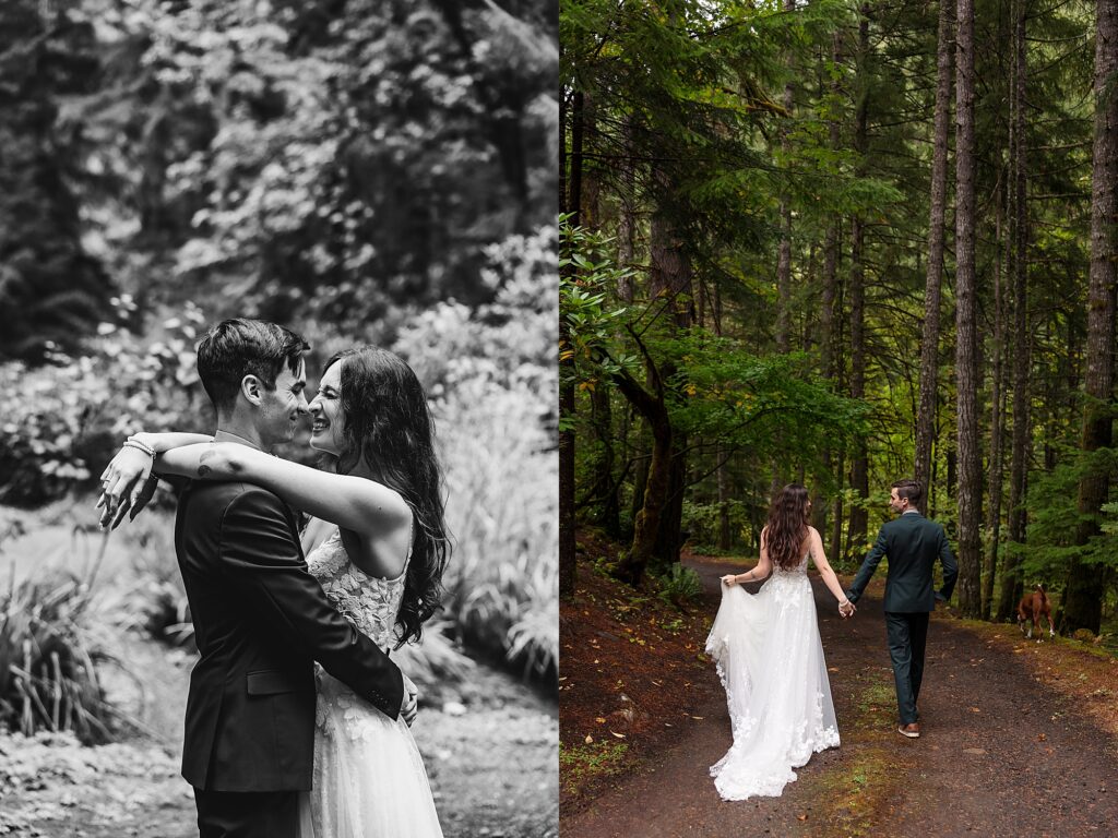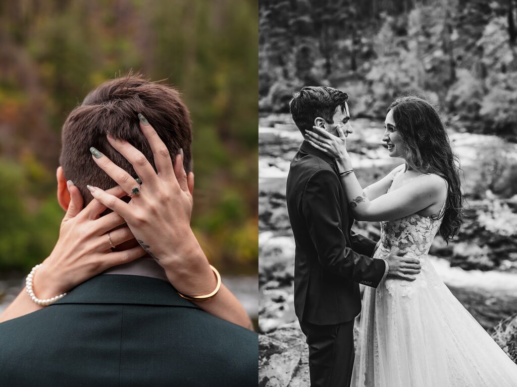 They had an intimate ceremony with the river backdrop which was gorgeous, with a handful of their favorite people. Then we wandered around the Umpqua National Forest for dreamy woodsy backdrops. They said their vows privately with the Toketee Falls in the background while it sprinkled on us. They embraced the rain and were SO lovely to photograph. Their love is playful and fun and it’s my favorite to capture. What an amazing day!