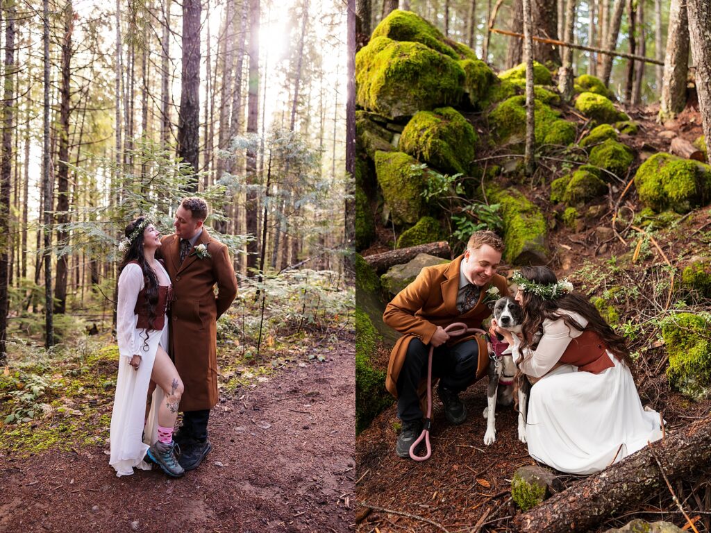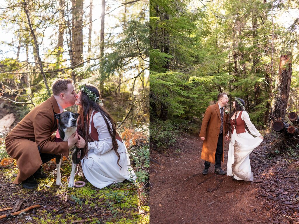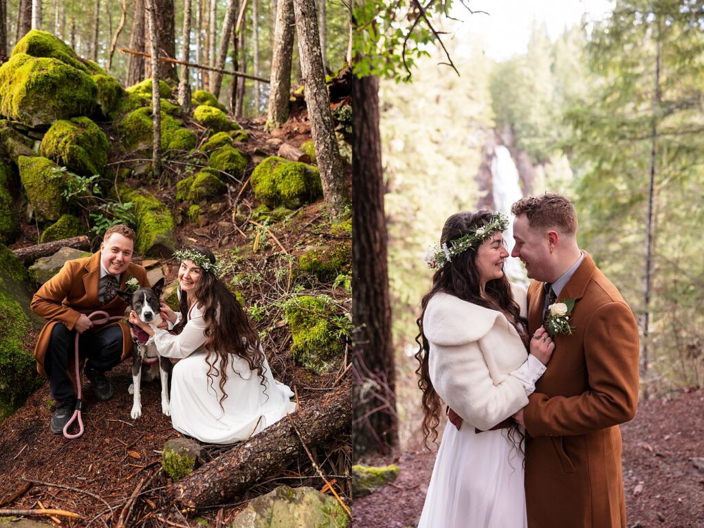Waterfalls are just my jam. And when you have a laid back couple that’s willing to get their dress dirty and wear hiking boots, I’m SO in! This beautiful area is full of mossy trees and woodsy backdrops. What an epic waterfall elopement at Mill Creek Falls. And when dogs are involved, I’m thrilled! Marlena and Colin were so lovely to work with. Congrats to the newlyweds!