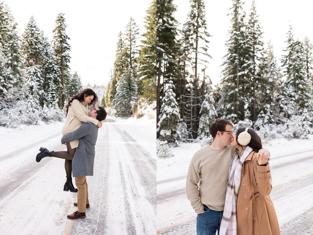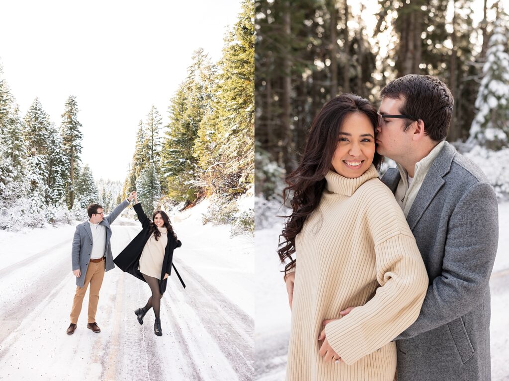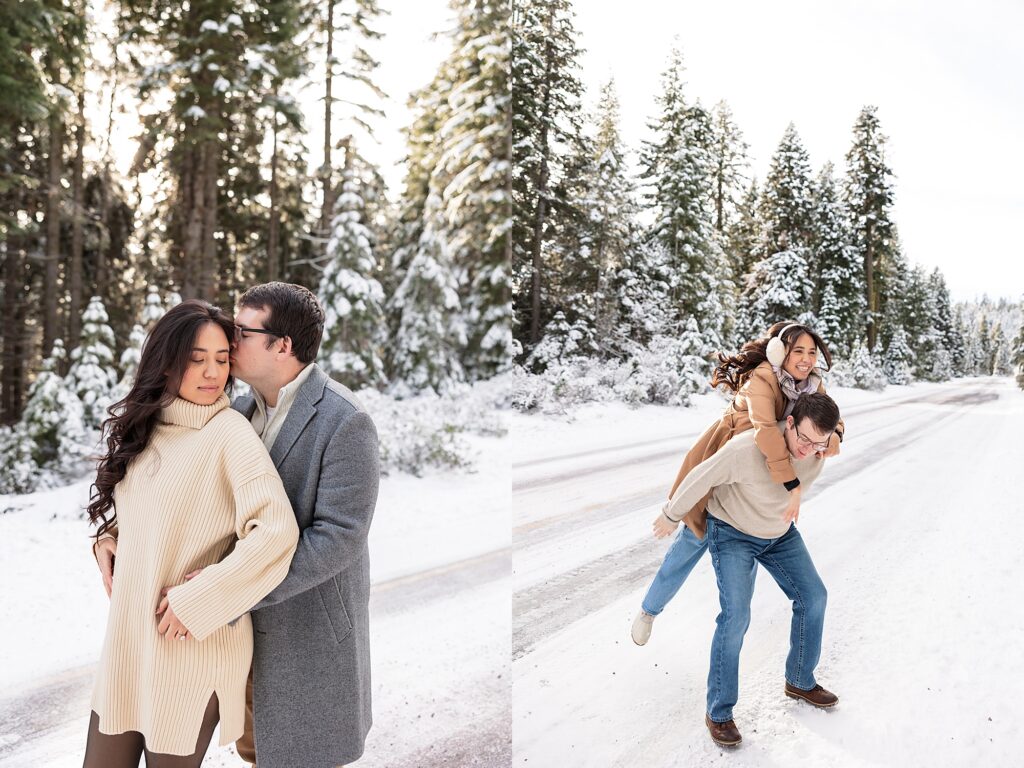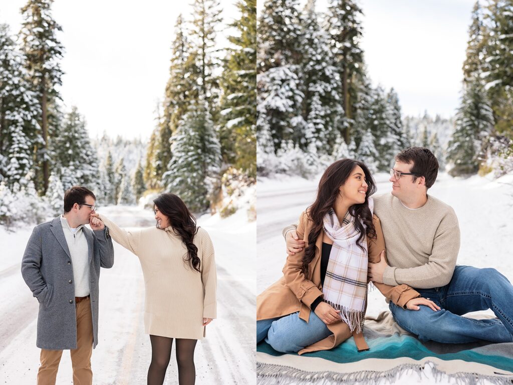 Fresh snow is always so fun to play in! The evening light was amazing with the snow covered trees. Aida and Blane are so dang cute together. They snuggled, kissed and tossed snow in the air. Loved this session!