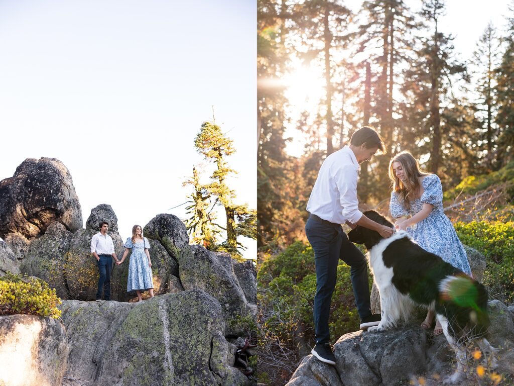 This was such a sweet engagement session! Obviously, I loooove when dogs are included. And this pup is huge! What a gentle giant. So so cute. The sunset light was amazing and Mt. Ashland is a gorgeous backdrop. When it’s clear, there are views of Mt. Shasta from there. And the rocks and trees are a beautiful setting for portraits. Congrats to Olivia and Kyle!