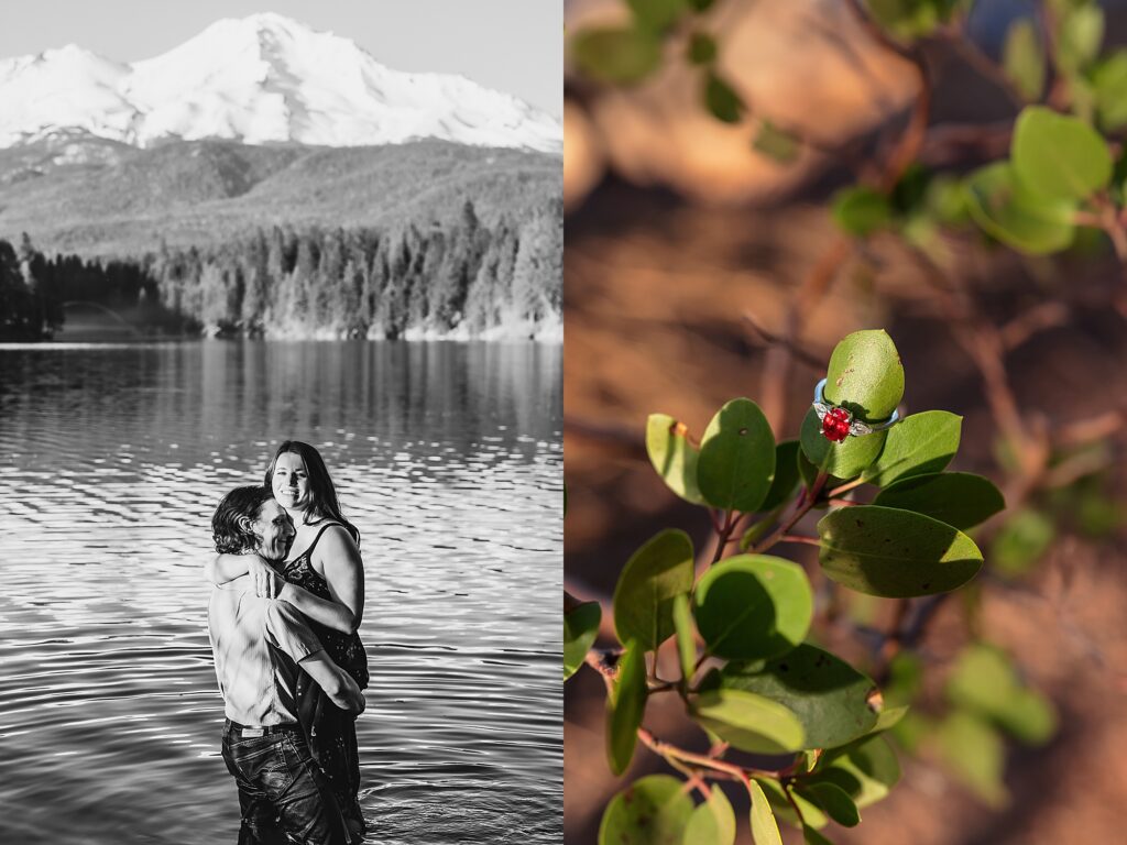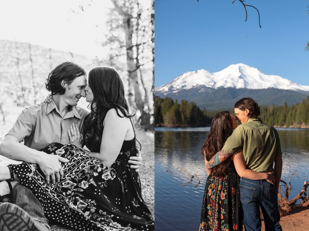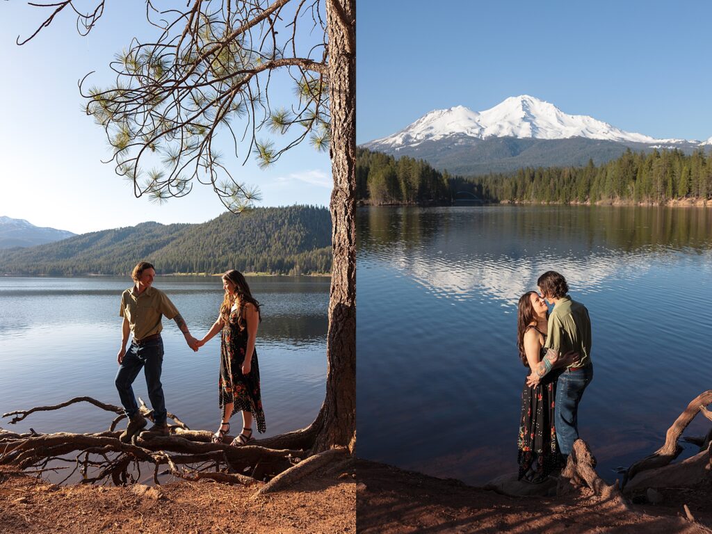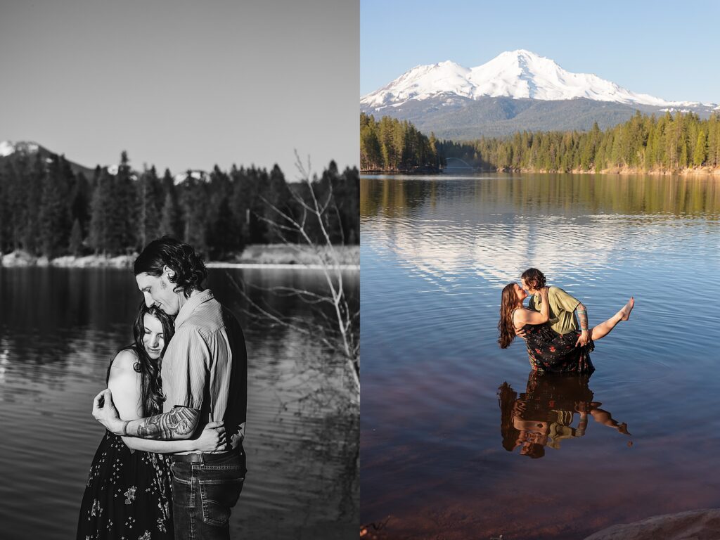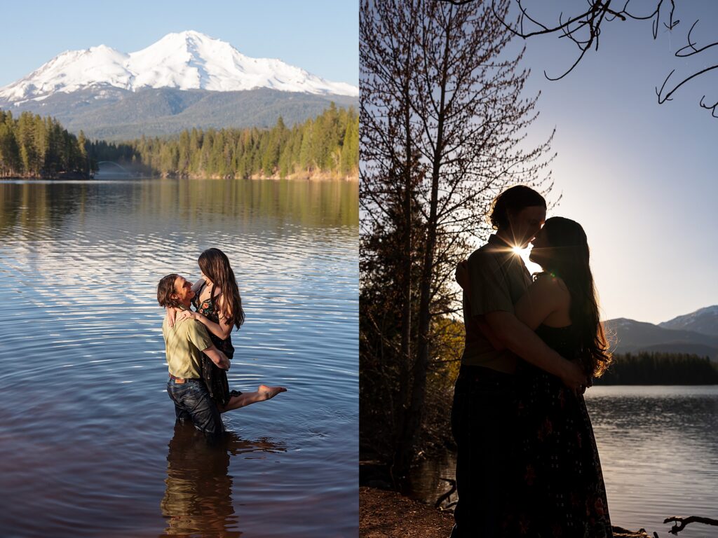What a fun and playful engagement session this was! Raquel and Kevin are so sweet together. They even got into the water at the end and I love those shots so much! The views of Mt. Shasta from the lake are so stunning. I will never get tired of that mountain. So gorgeous! I love photographing love so much.